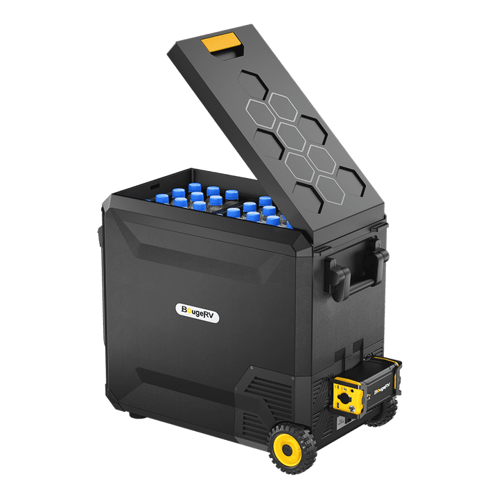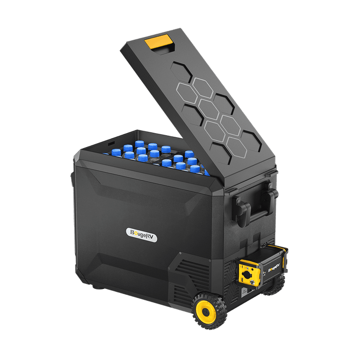 Say goodbye to melted ice cream and wilted food on your adventures! The BougeRV Aspen fridge is the world's first to feature the revolutionary IceDrive™ System. With a touch of a button, the IceDrive™ system provides an Ice-cold/Fridge mode, allowing the Ice-cold zone to reach a chilling -4 °F temperature. Combining a regular dual zone control system, you can also use the other zone to keep food fresh. The Aspen fridge is your go-to companion for camping, road trips, picnics, and more.