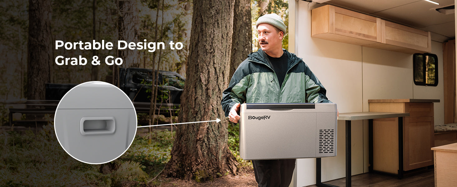 Grâce à la technologie de réfrigération à compresseur, le réfrigérateur portable BougeRV de 23 litres peut atteindre 16 minutes de refroidissement rapide pour garder les aliments frais.