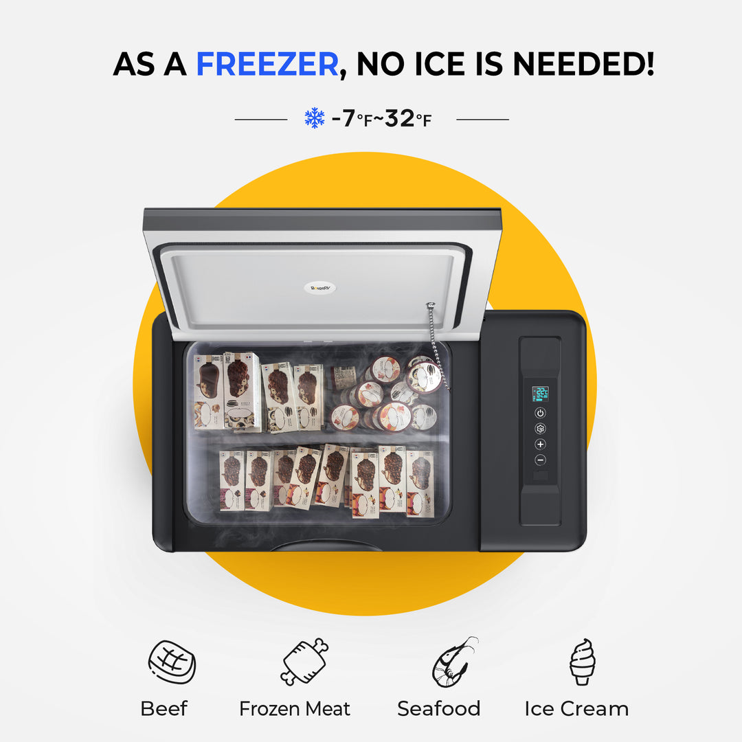 Avec la technologie avancée de réfrigération à compresseur. Cette technologie de pointe garantit que vos aliments restent frais et permettent un refroidissement rapide en seulement 16 minutes. Dites adieu à la nourriture avariée et bonjour à une fraîcheur longue durée lors de toutes vos aventures en plein air.