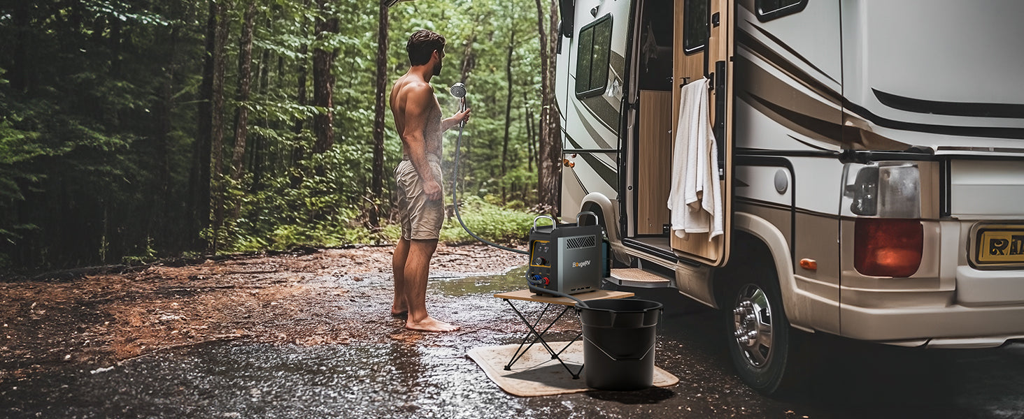 Le chauffe-eau pour camping-car BougeRV est une douche à eau chaude très appréciée pour le camping. Ce système de douche portable est alimenté au propane et offre une conception compacte et légère.