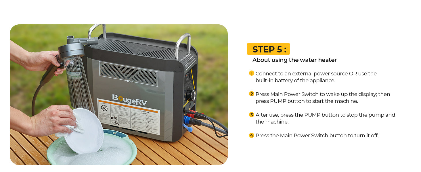 Vous pouvez choisir le chauffe-eau pour camping-car BougeRV, qui fonctionne au propane et fournit de l'eau chaude à volonté, ce qui le rend parfait pour le nettoyage, la vaisselle et la douche.
