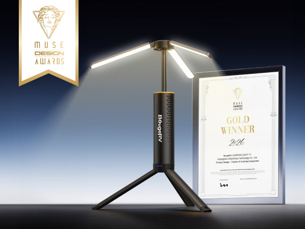 BougeRV T1 Portable Telescopic Camping Lantern is a reliable and atmospheric lighting solution for camping, RV trips, and emergency use. With a telescopic height of up to 5.5 ft, it delivers wide-area illumination covering 1076 ft², ideal for tents, campsites, and outdoor gatherings. A 15600mAh high-capacity battery delivers up to 102 hours of runtime, while 3-hour fast charging keeps downtime to a minimum. Featuring three brightness levels and a multi-functional design, this long-lasting camping light easily transforms into a table lamp, floor lamp, hanging lantern, flashlight, or SOS light.