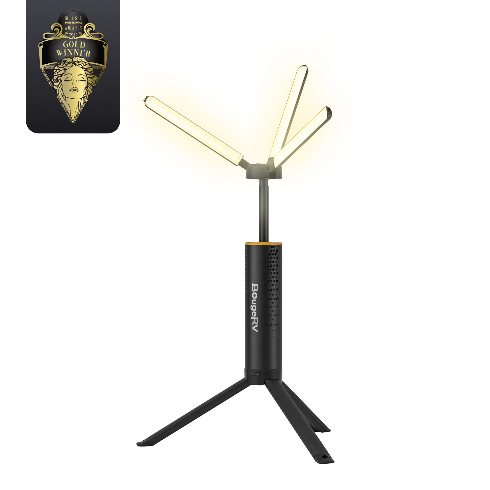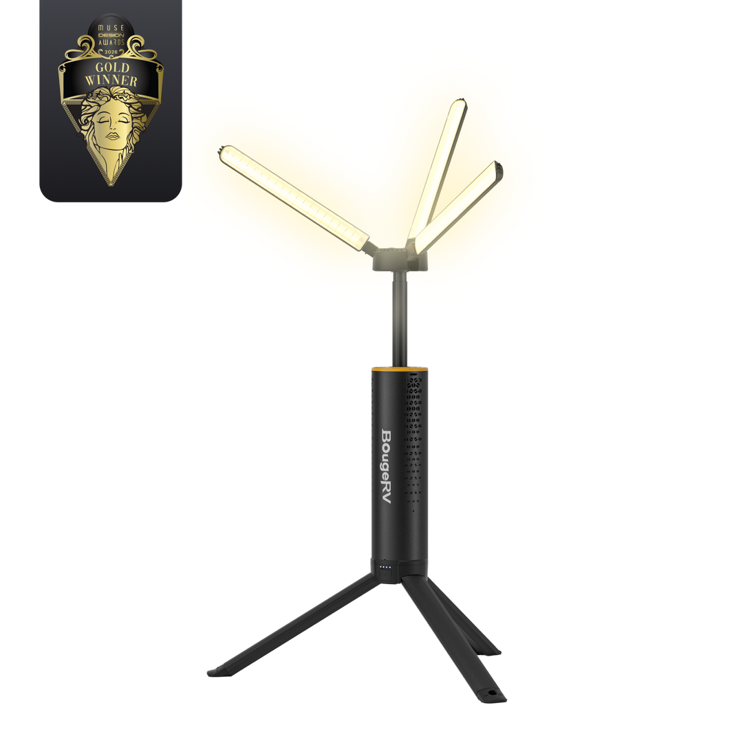 Most commonly, telescopic camping lights run on rechargeable batteries, often with USB charging capabilities. BougeRV camping light features rechargeable powerful 15600mAh battery, delivering up to 60 hours of use.
