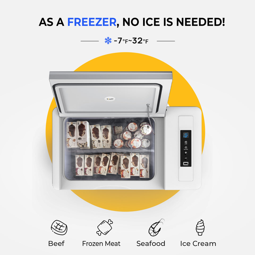 With the advanced compressor refrigeration technology. This cutting-edge technology ensures that your food stays fresh, achieving rapid cooling in just 16 minutes. Say goodbye to spoiled food and hello to long-lasting freshness on all your outdoor adventures.