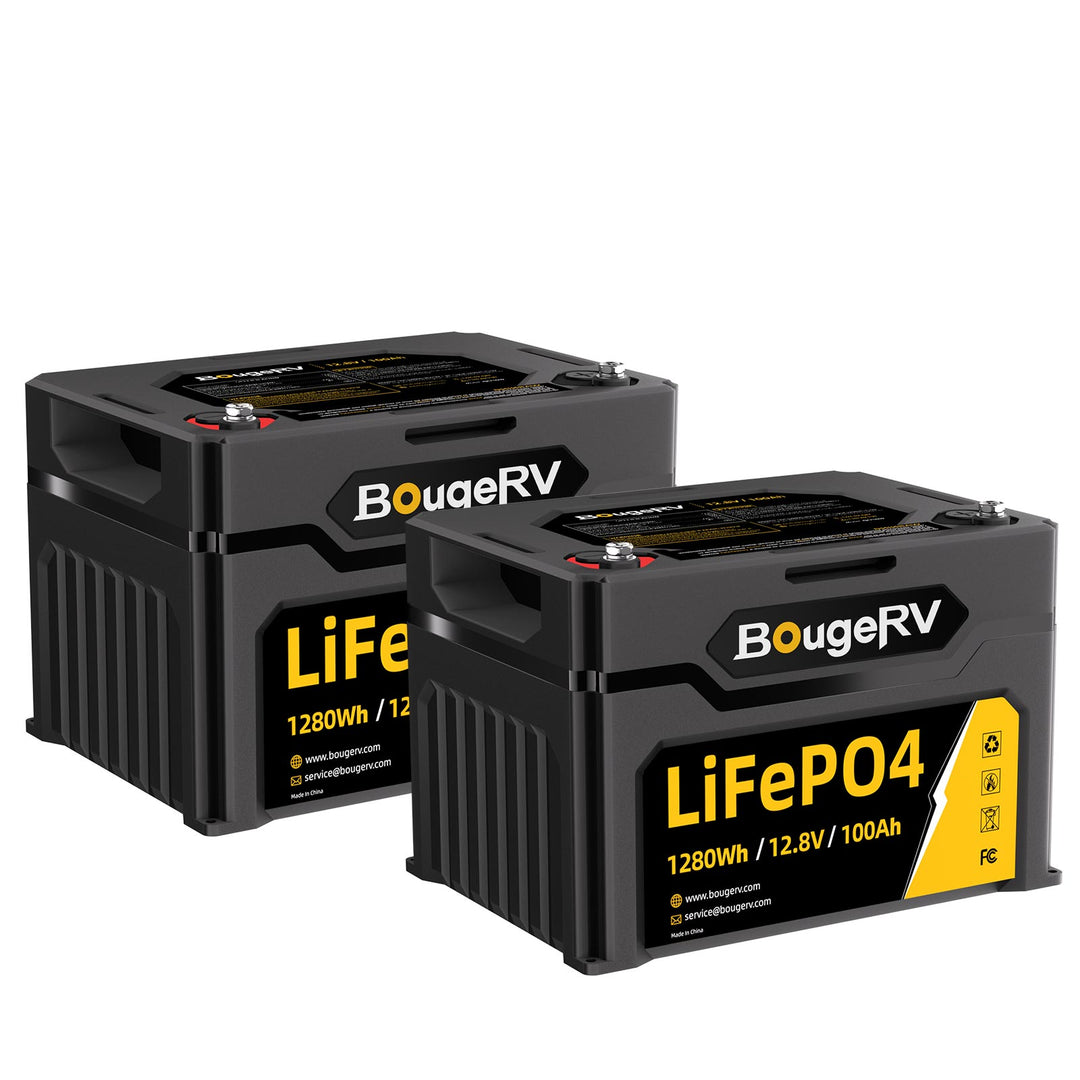 Adopt premium LiFePO4, BougeRV 12V 100Ah lithium battery provides 4000+ recharge cycles, 100% discharged rate and 10 years lifespan. Compare with lead-acid battery, which provides 500 recharge cycles and 50% discharged rate, lithium battery is more compact and has larger capacity than Lead-acid battery.