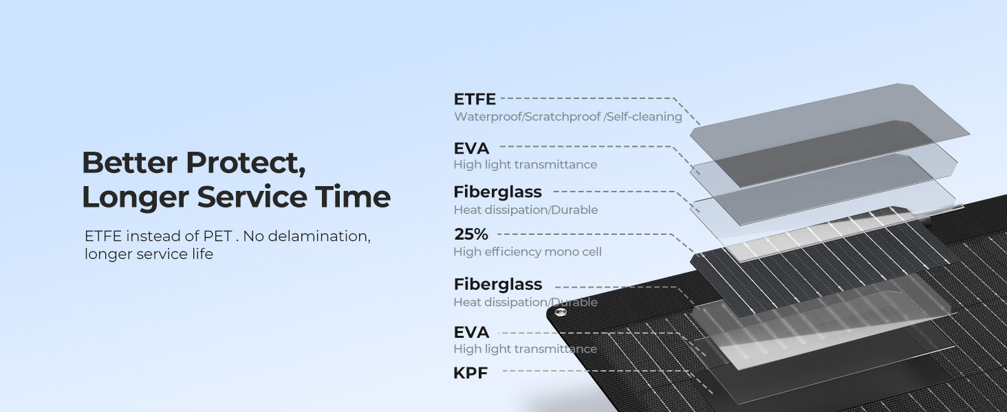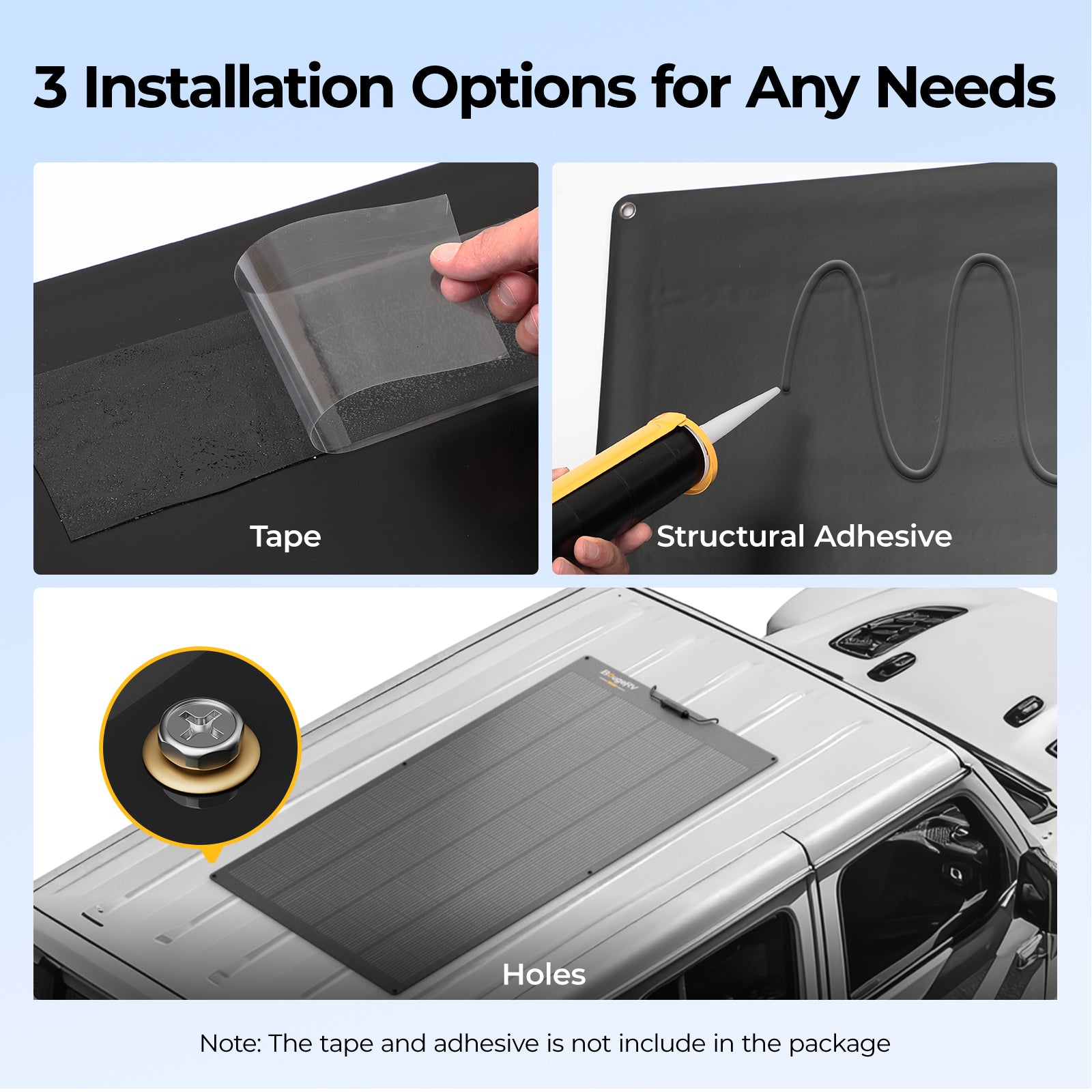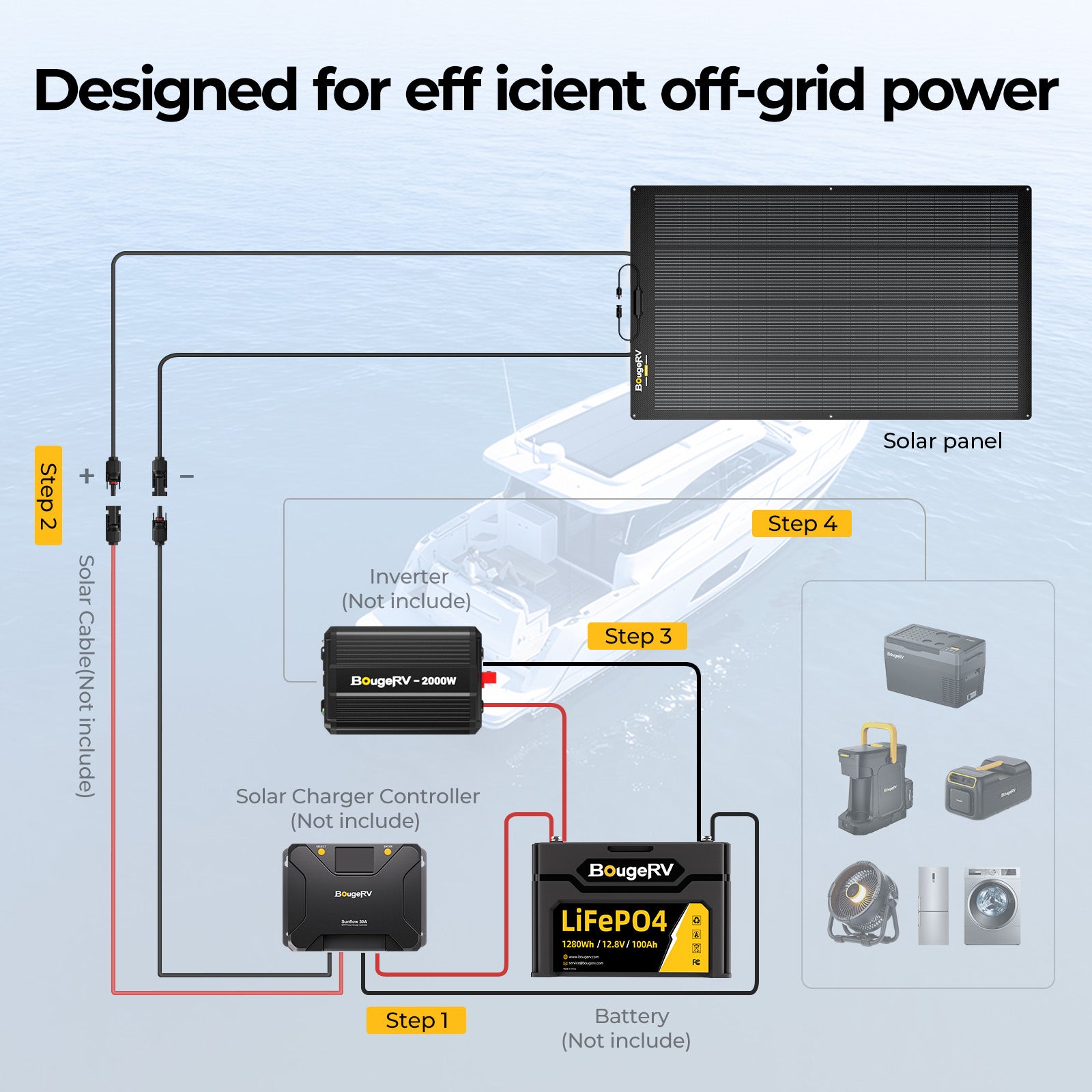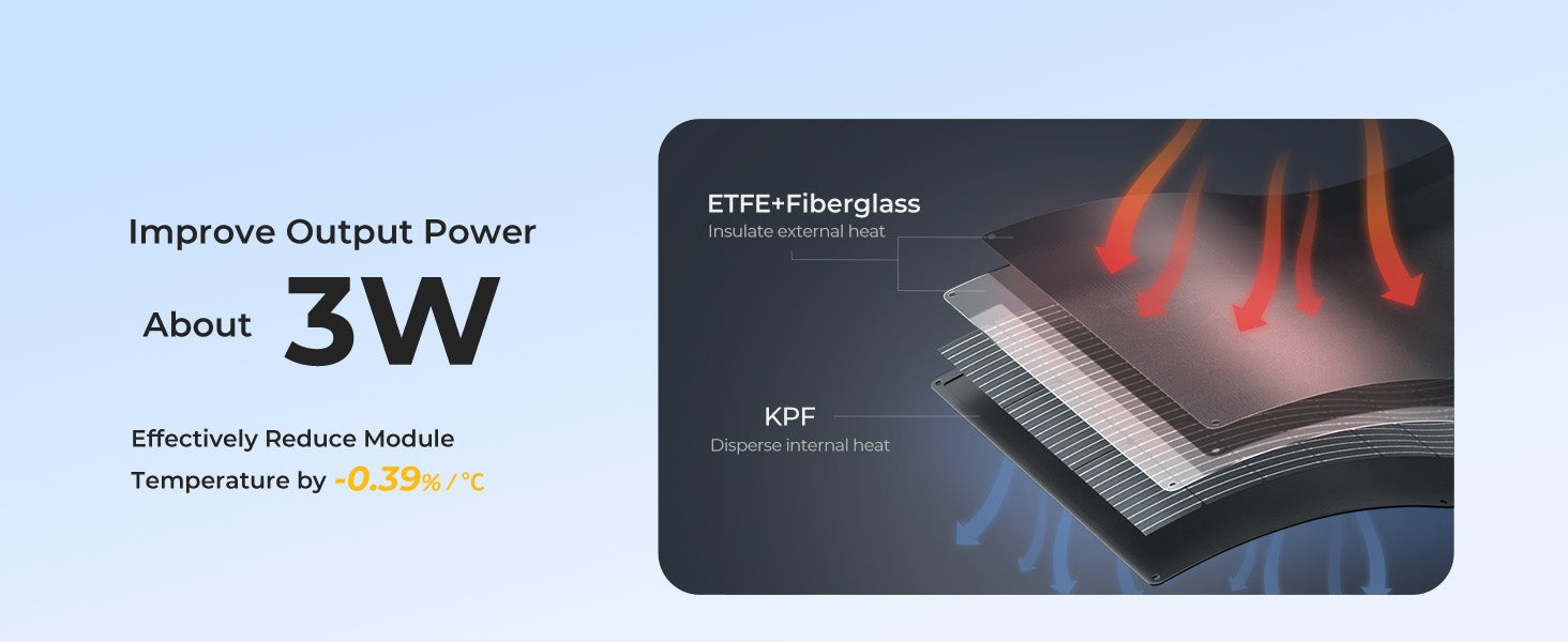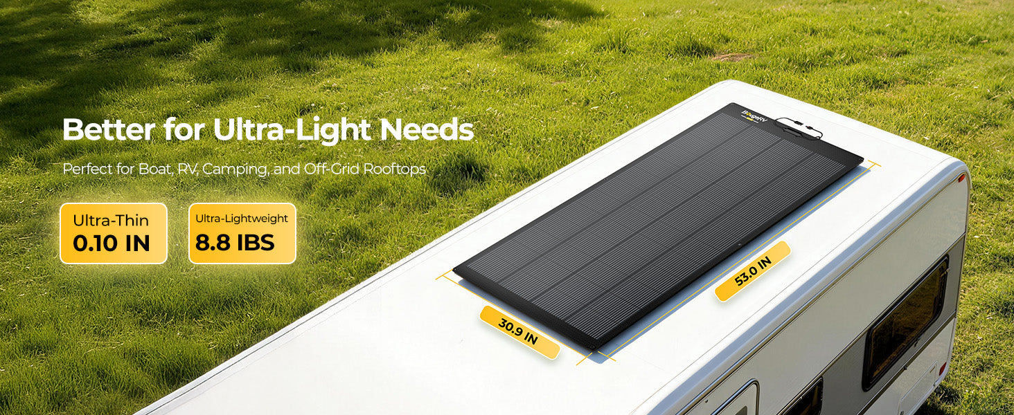 BougeRV Arch 2.0 200W N-Type Fiberglass Flexible Solar Panel – the smart upgrade over the standard Arch. Featuring N-Type TOPCon cells (25% efficiency) and 16BB busbars, it delivers higher energy output and long-term reliability. Compact, lightweight, and bendable up to 270°, it installs easily on RVs, boats, or curved surfaces.