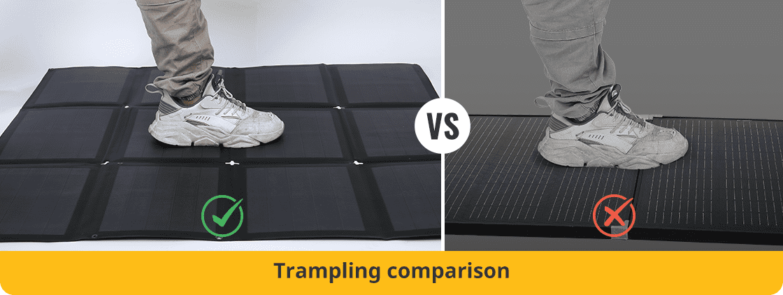 In harsh conditions, traditional folding solar panels can result in energy loss and a 20% decrease in efficiency after just two years, possibly necessitating a complete panel replacement. But our new solar panels are engineered to prevent energy loss and maintain peak performance for up to 20 years.